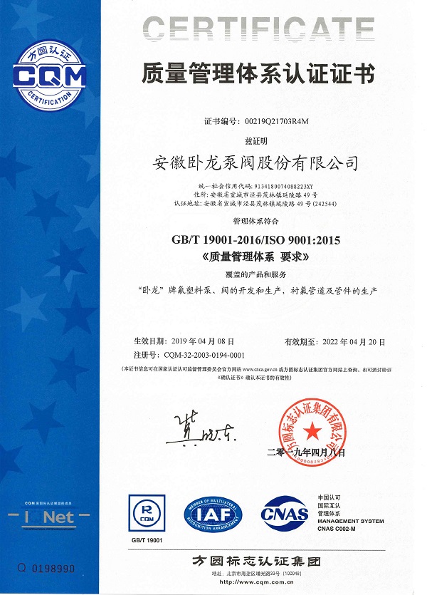 安徽臥龍泵閥股份有限公司(原安徽臥龍泵閥有限責(zé)任公司、皖南氟塑料泵閥廠(chǎng))位于安徽涇縣茂林鎮(zhèn)臥龍工業(yè)園,與安徽著名的黃山、九華山、桃花潭景區(qū)、太平湖景區(qū)相毗鄰。創(chuàng)建于1985年,是大型的氟塑料泵閥專(zhuān)業(yè)生產(chǎn)基地。