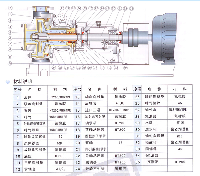 采用軸向進(jìn)口,徑向出口方式,葉輪采用半開式、流道寬,在輸送含有顆粒的漿料時(shí)不易堵塞,抗結(jié)晶、耐顆粒。