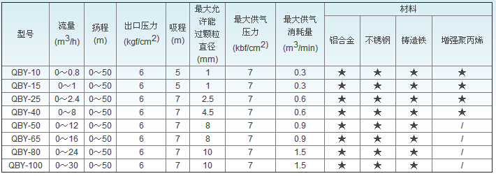 3、揚程、流量可通過氣閥開度實現(xiàn)無級調(diào)節(jié)。(氣壓調(diào)節(jié)在1-7kg/cm2之間)。